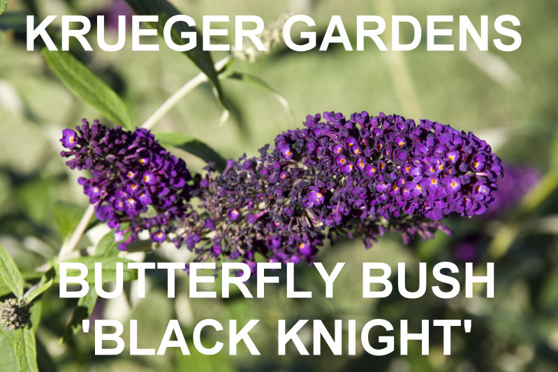 BUTTERFLY BUSH ‘BLACK KNIGHT’ (Buddleia davidii ‘Black Knight’) This is a deciduous (Zone 5-8) to semi-evergreen shrub (Zone 9) with a weeping form that can get 10-12 ft. high and wide. The tiny blue-black flowers are irresistible to butterflies. They are arranged in 10" inch, cone-shaped clusters that droop in a profusion of color and stay abuzz with winged, nectar-feeding insects late spring until frost. Blooms are so profuse that they cause the branches to arch even more and are sweetly fragrant. Butterfly bush likes well drained, average soil and full partial sun. They thrive in fairly dry conditions once established. Roots may perish in wet soil. May be cut back to 6" in late winter and will re-emerge from roots and reach normal size each year. It is advisable to cut back the shrubs, since flowers are usually larger and more prolific on new wood. Avoid pesticide use. Pinch off spent flower clusters to encourage blooming. Can be propagated by cuttings. |