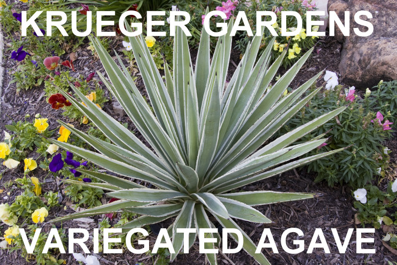 VARIEGATED AGAVE (Agave angustifolia var. marginata) This small-medium sized agave, often called Caribbean Agave, native to tropical Costa Rica and Mexico, forms clumps 3' tall and wide. The stiff sword-shaped 1.5" wide leaves, are green with creamy yellow stripes along the margins. It prefers filtered shade, but will accept full sun. It is cold hardy to about 25 degrees F and requires more water than most other agaves when it is young, but allow to dry before watering again. Do not over-water during the winter. Very little water is needed once established. Fertilizer once during the growing season. It blooms after ten or more years, dies after flowering, but new plants may develop at the base. It is used to make mezcal (tequila), rope, soap, and other products. |