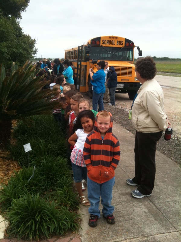 | The Big Yellow Bus arrives... On a coolish Monday morning, April 19, 2010 Torres Elementary Pre K Children visited Victoria Educational Gardens |