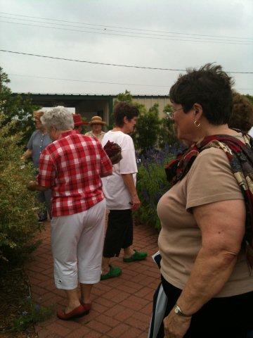 Although a tad bit of rain fell on the Friday that the Red Hatters toured VEG, they enjoyed the garden tour none-the-less. One of our own 2009 interns, Gloria Spell, is one of the Red Hatters.