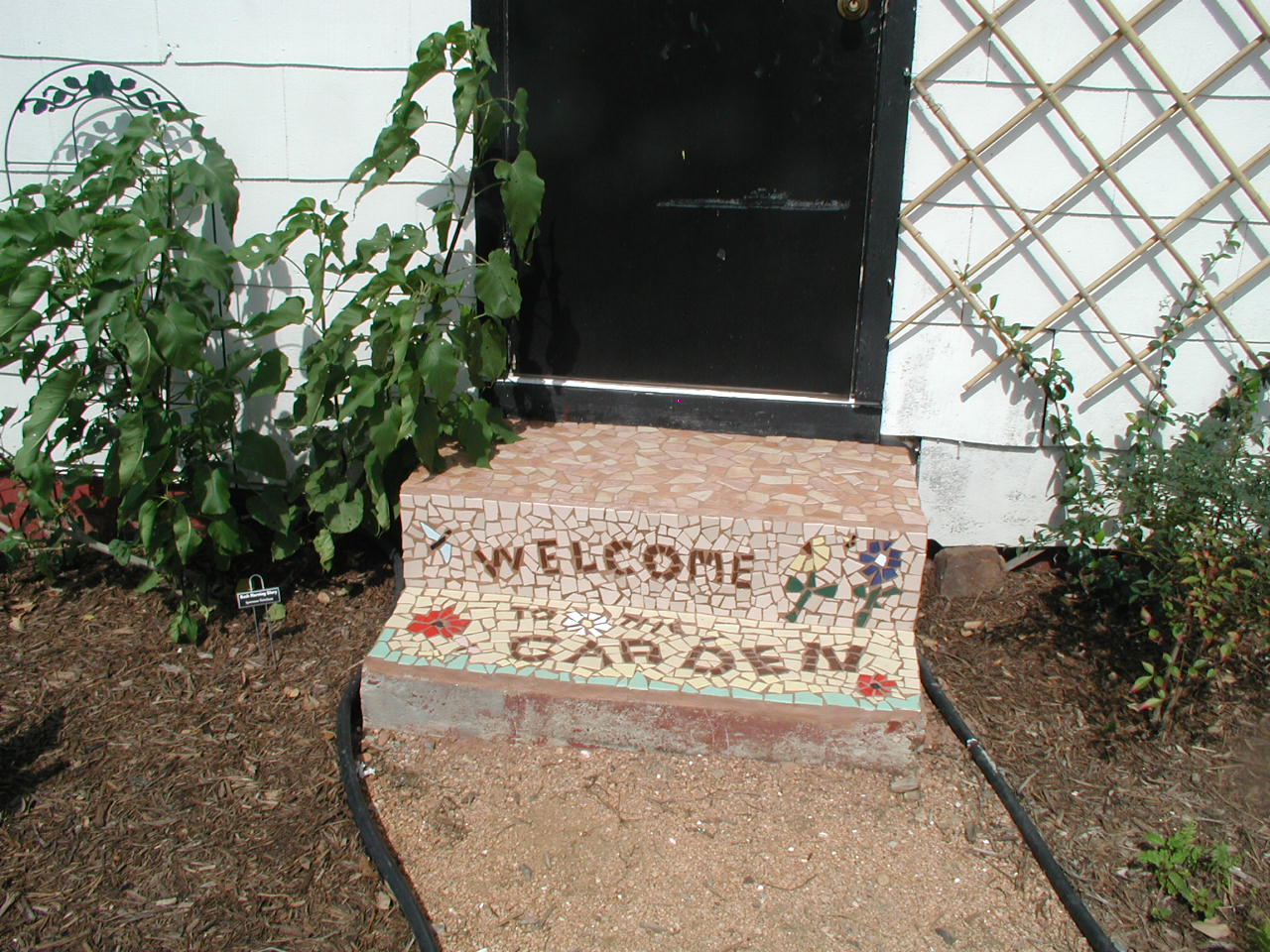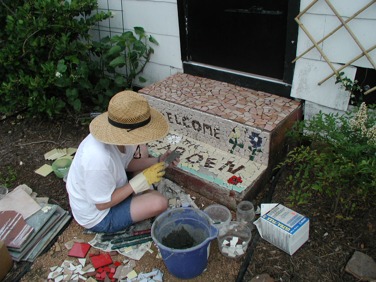| Cheryl Clark, Victoria County Master Gardener, designed and constructed this mosaic tile design for the steps to the VEG Command Post. | ||||||||||||||||||||||||